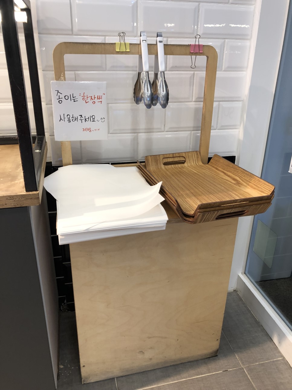 쟁반과 집게가 있어서 들고 원하는