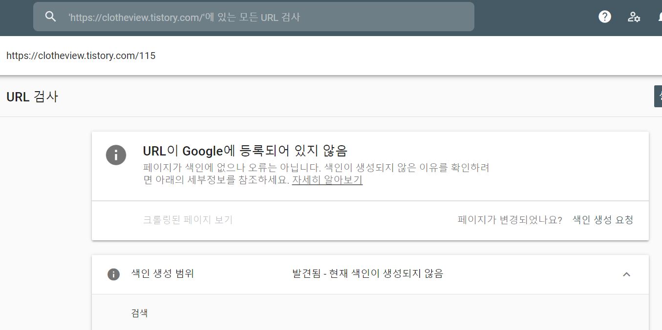 문제가 되고 있던 글을 구글 써치 콘솔 URL 색인 생성 요청해주면 되는데 원래는 구글에서 자동으로 크롤링 후에 검색 노출이 되지만 안 되는 경우가 생각보다 있는 편이라 글을 작성 후에는 따로 색인 요청을 한 번씩 해주는 게 좋습니다.