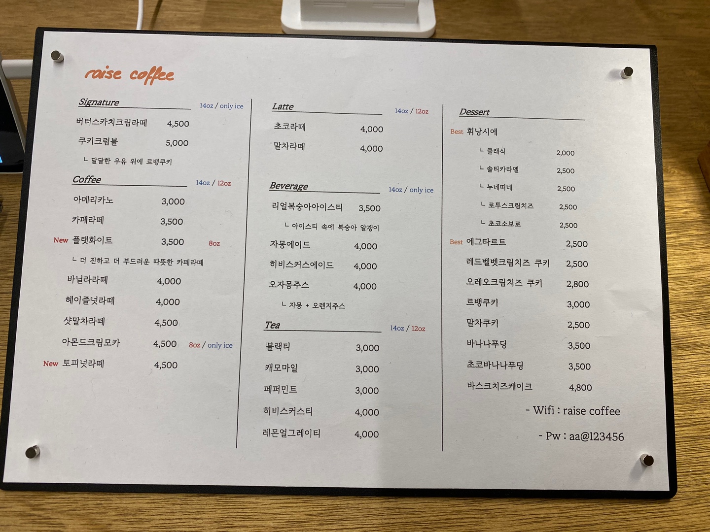 레이즈커피 메뉴가 다양했었는데