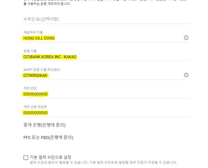 구글 애드센스 카카오뱅크 계좌 등록하는 방법