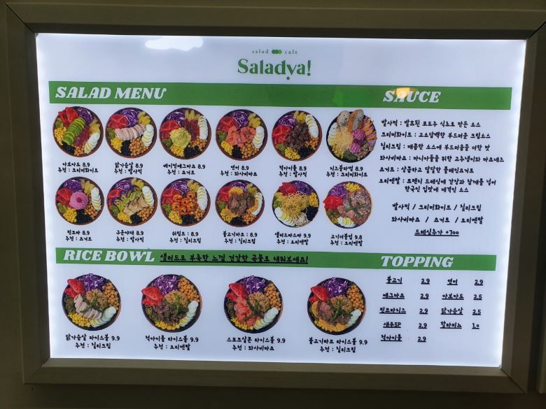 제가 방문한 곳은 대명역 인근에 위치한 샐러드야인데 체인으로 다른 지점이 있기 때문에 이용하실 분들은 찾아보시면 좋을 것 같고 건강식 샐러드 종류가 다양하게 있었는데 샐러드파스타는 처음부터 먹고 싶어서 골랐고 하나는 척아이롤 라이스볼 그리고 아보카도 바나나 주스도 판매하고 있어서 같이 주문을 했었습니다.