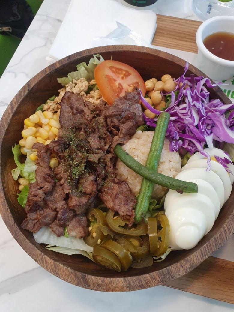 척아이롤 라이스볼은 부드러운 척아이롤, 병아리콩, 할라피뇨, 계란, 옥수수, 올리브, 밥, 각종 채소 등 구성이 너무 알찬 것 같습니다. 평소에 채소를 좋아하는 편은 아니라 양이 많아서 다 먹을 수 있을지 걱정이었는데 전혀 부담 없이 먹을 수 있었고 척 아일롤 고기가 부드럽고 맛있었던 것 같습니다. 요금 계속 기름진 음식만 먹다가 오랜만에 건강식 샐러드 먹는 것도 괜찮은 것 같고 집에서 샐러드파스타 만들어서 먹어봐도 될 것 같다는 생각을 했습니다.