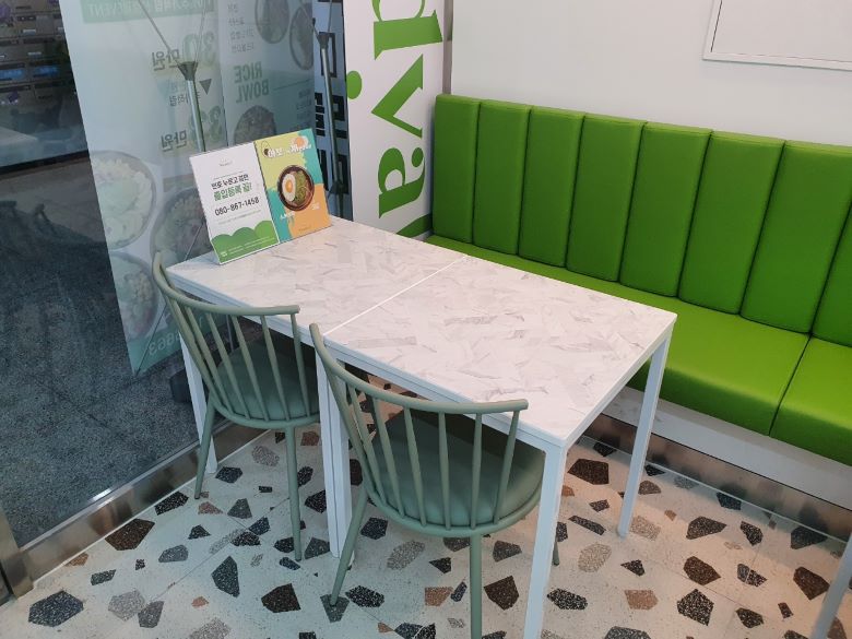 내부는 간단하게 이용하기 좋은 테이블이 비치되어 있었고 주문한 음식이 나오기를 기다리고 있었는데 포장을 하기 위해서 오시는 손님들이 꽤 있었습니다. 아보카도 샐러드, 치즈 블라썸, 파스타 샐러드 종류가 잘 나가는 것 같았고 주문하시는 게 자연스러운 모습을 봤을 때 여러 번 드셔 보신 것 같아서 제가 주문한 샐러드가 기대가 됐습니다.