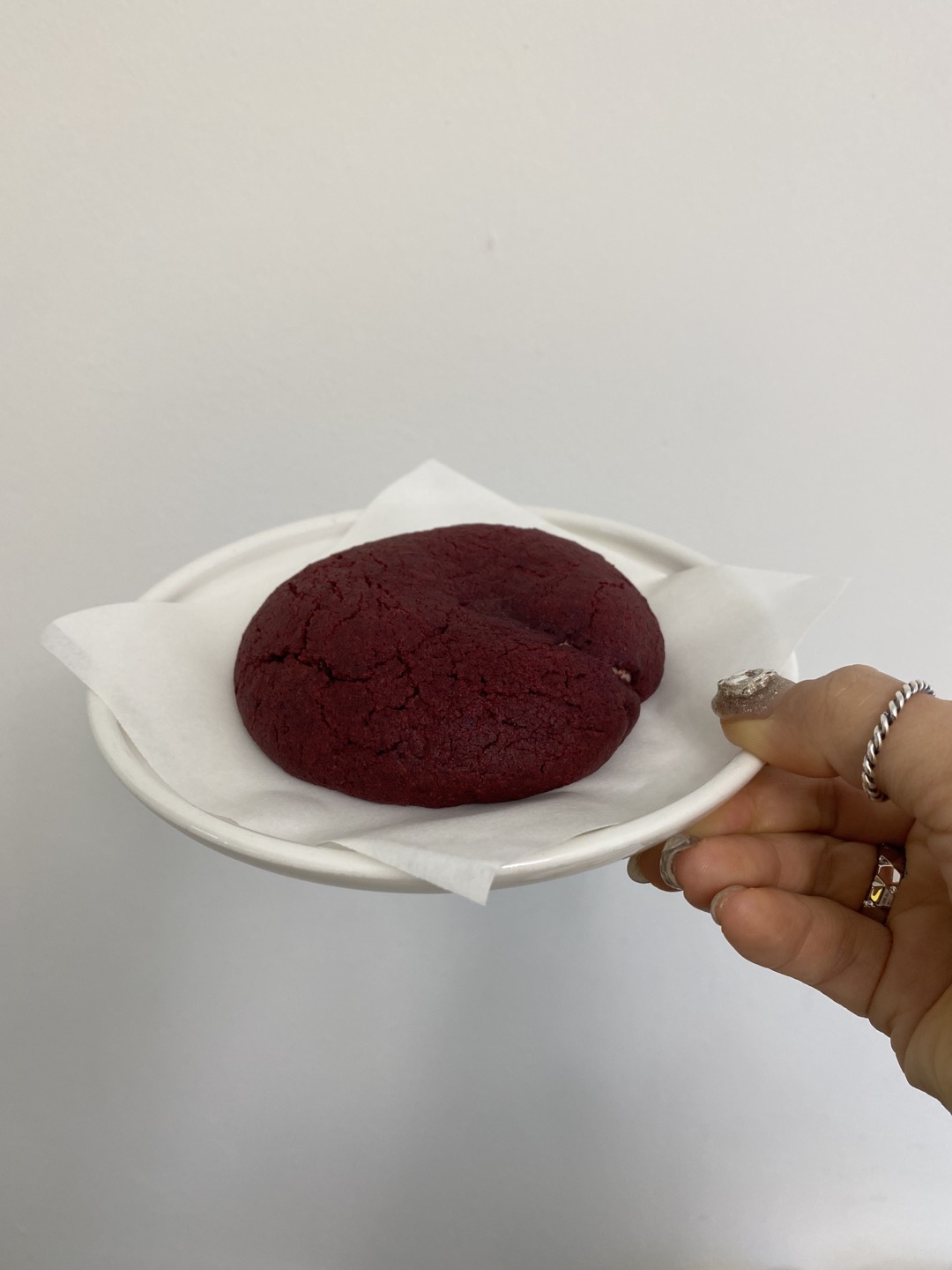 일하 카페 쿠키는 레드벨벳으로 주문을 했었는데 안에 크림치즈가 들어가있고 바삭한 쿠키가 아니라 브라우니 같은 식감인데 먹기편하고 맛있는 것 같습니다. 가격대비 크기도 쫌 있는 편이라 좋은 것 같고 커피랑 먹기에 괜찮았습니다.