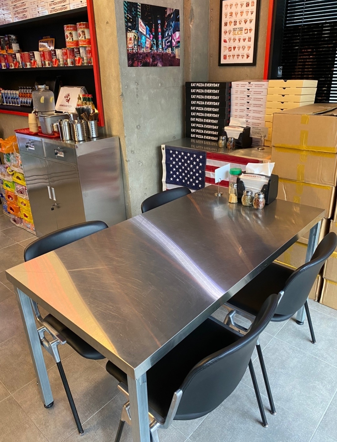 홈슬라이스 피자 내부 인테리어 깔끔하게 꾸며져 있었습니다. 옆에 테이블이 더 있는데 손님들이 있어서 빈 곳만 찍어봤습니다. 평소에 피자를 그렇게 좋아하는 편이 아닌데 이상하게 가끔 먹고 싶은 날이 있는데 그때가 오늘인 것 같았습니다.