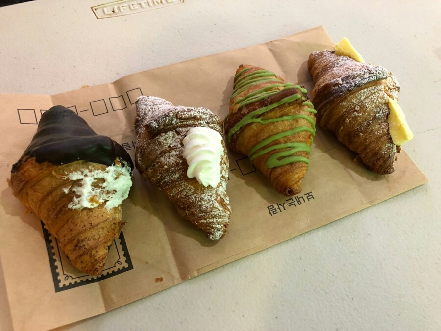 크라상점에는 다양한 맛의 크루아상들이